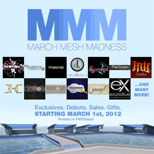 MarchMeshMadness, starting on First of March 2012. Damien Fate from coldLogic hosts this cool Event for all the Mesh Maniacs out there on FATE Island Find Exclusives, Gifts, Sales and Debuts there. Participatin designers are: